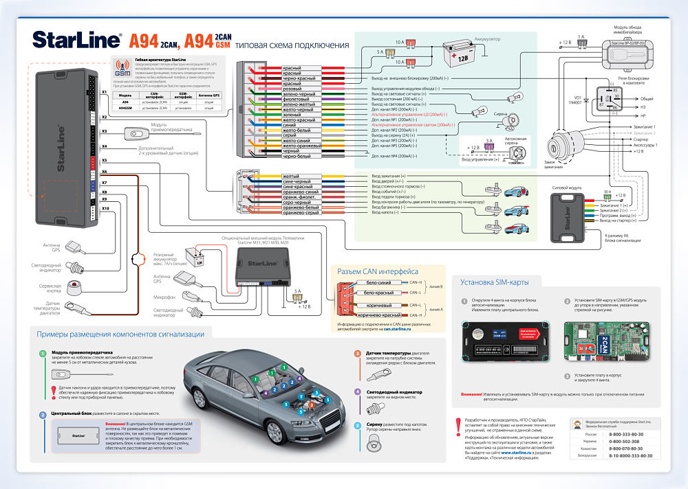 Автомобильная сигнализация Старлайн А94 с автозапуском относится к противоугонным охранным системам нового поколения. Она отличается высоким уровнем защиты от взлома, широким набором функций и хорошей надежностью. Для установки и настройки Старлайн А94 есть инструкция по эксплуатации.