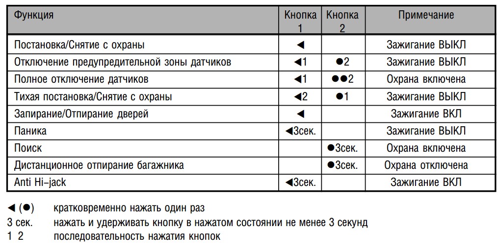 Набор функций, реализованный во многих моделях, не уступает более дорогостоящим изделиям от других брендов. Турбо таймер Режим используется для турбированных двигателей и служит для продления времени работы двигателя после выключения зажигания с целью охлаждения турбины. Деактивация системы V-8A выполняется по несколько иной процедуре: Открыть дверь и включить зажигание.