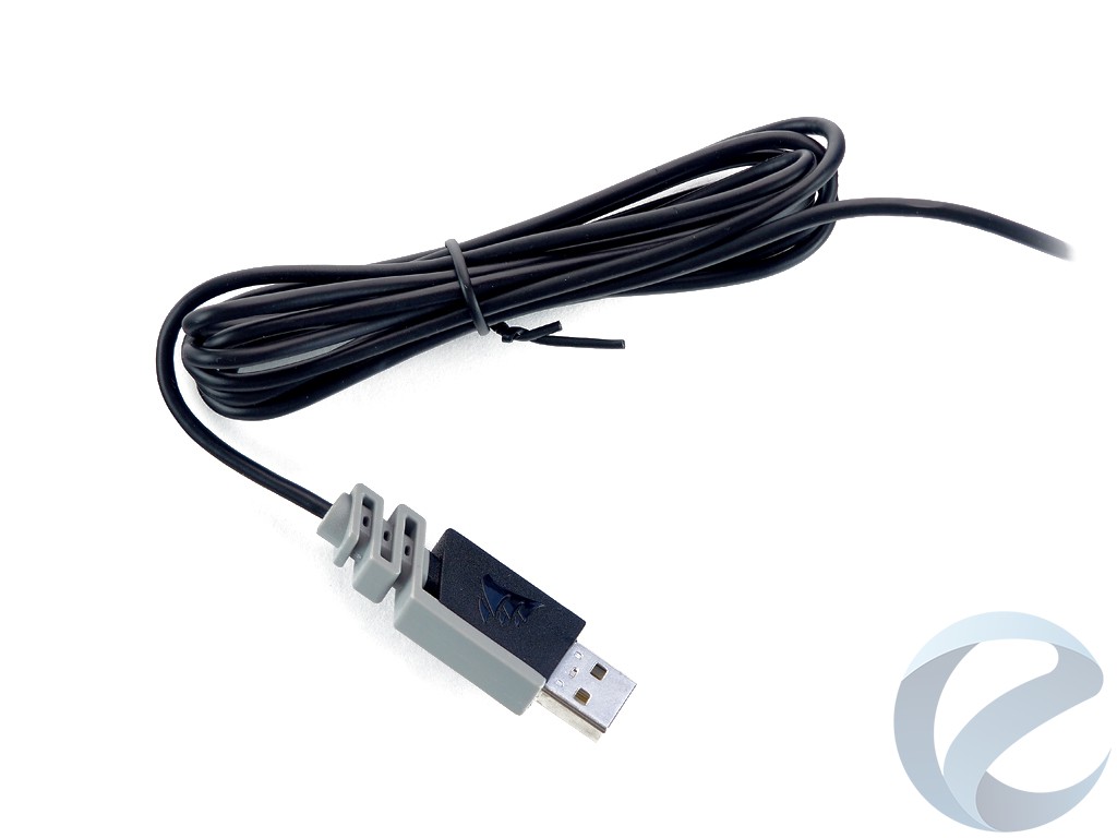 Соединяющий кабель длинной 1.8 метра не имеет тканевой оплетки и позолоченного штекера, однако он неплохо держит форму и крепится у основания мышки с левой стороны. В месте крепления имеется жесткая защита от надломов.