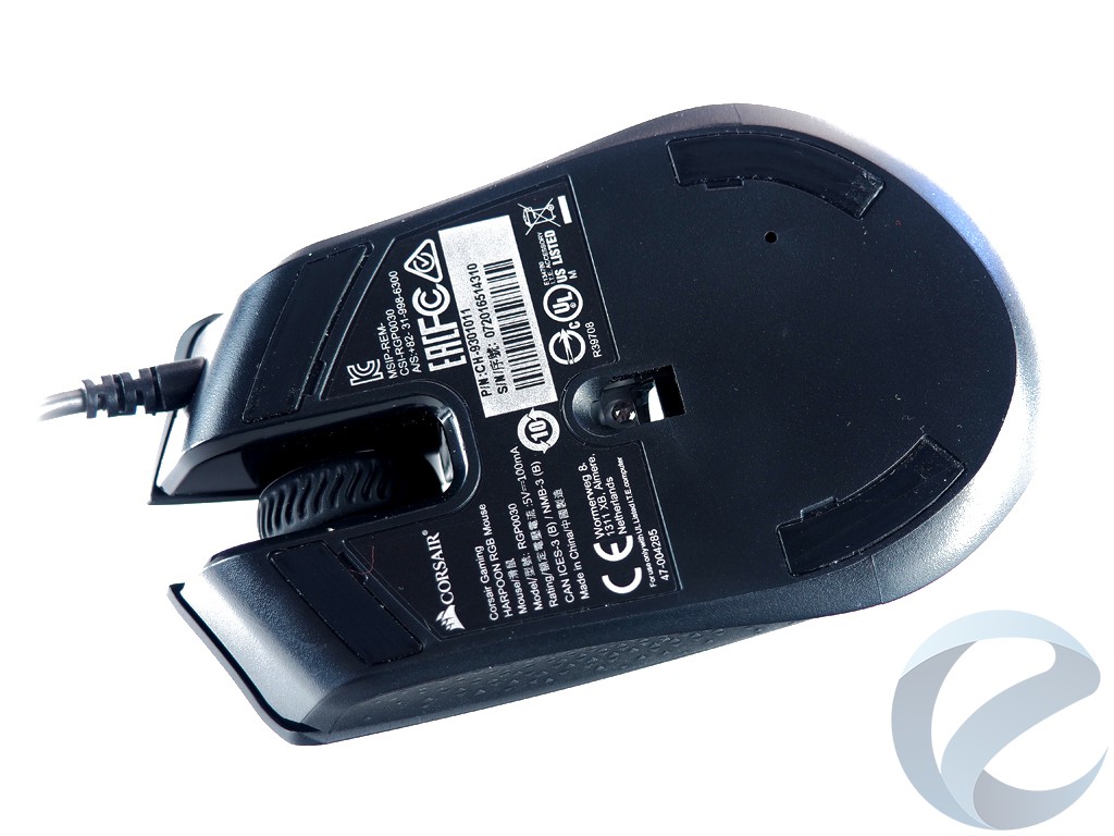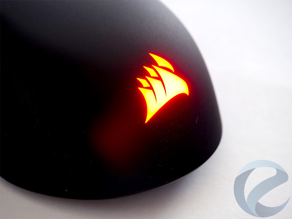 На спинке мышки находится логотип компании Corsair, который может менять цвет по желанию владельца с помощью фирменного программного обеспечения Corsair Utility Engine.