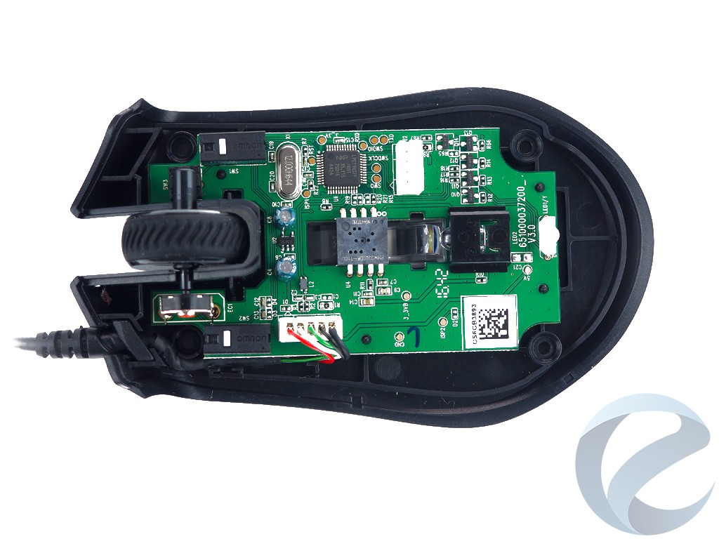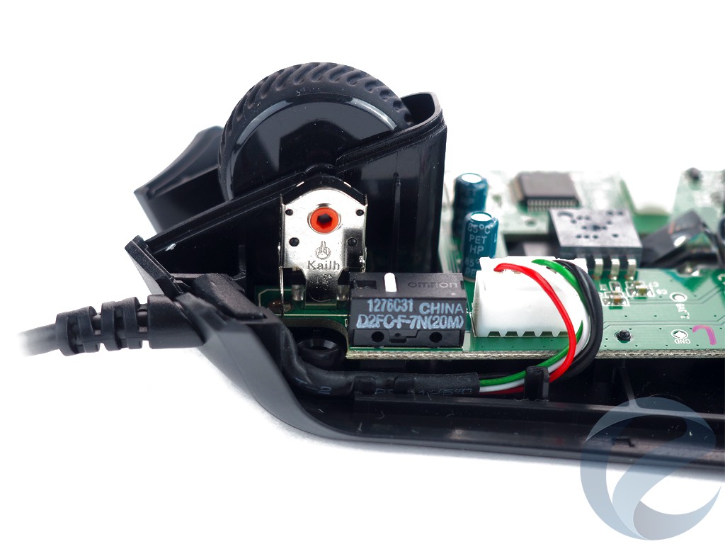 Внутренности манипулятора приятно удивили отличным качеством пайки и переключателями OMRON D2FC-F-7N(20M) на главных кнопках с ресурсом работы до 20 миллионов нажатий. Во время нажатия слышен четкий, чуть приглушенный щелчок. Боковые кнопки и переключатель DPI выполнены на безе переключателейKailh.