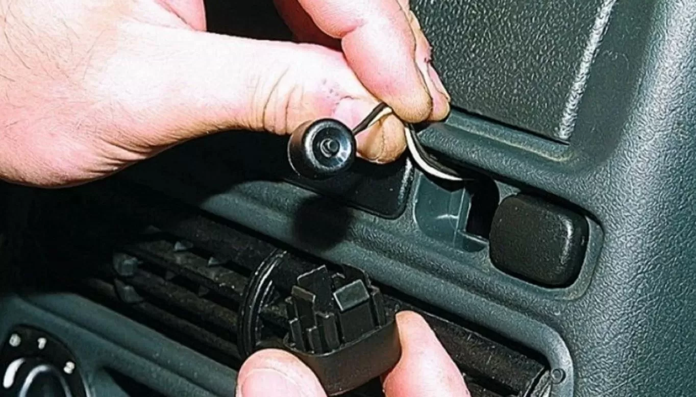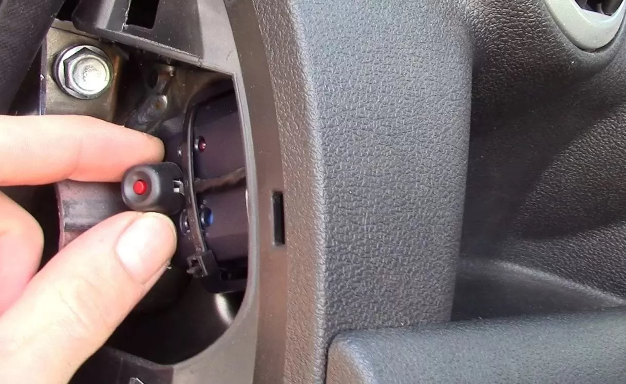 Маленькая кнопка находится на конце двухжильного провода, идущего от блока управления. Такое расположение выбрано в целях безопасности. Сам блок устанавливают в обшивку салона под приборной панелью. Для того чтобы найти кнопку сервисной функции, придется убирать провода и обшивку, но это не займет усилий. Выполнять процедуру нужно аккуратно, поскольку очень легко сломать панель.
