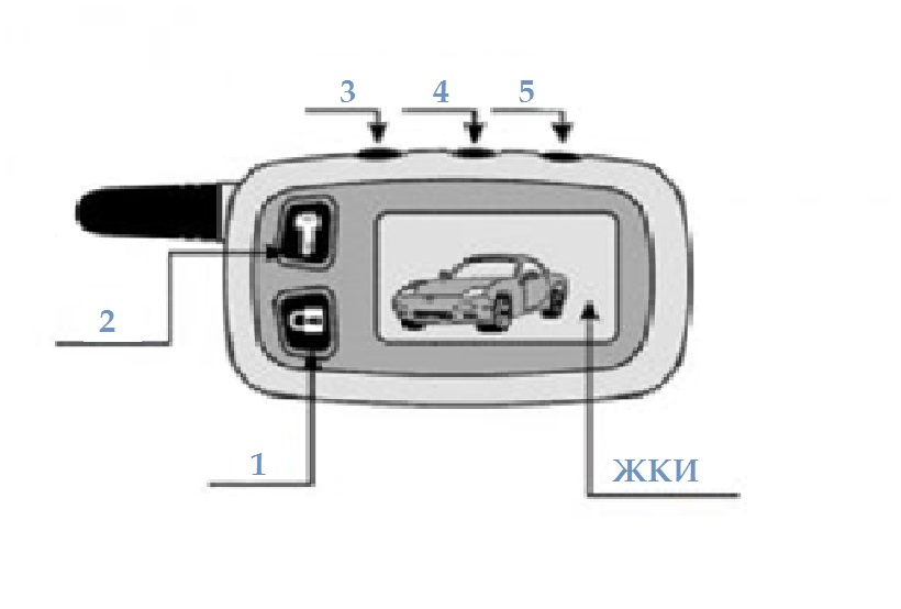 Чтобы дистанционно произвести запуск двигателя автомобиля с брелока Tomahawk TZ-9010, необходимо нажать кнопку 2 (смотрите рисунок).