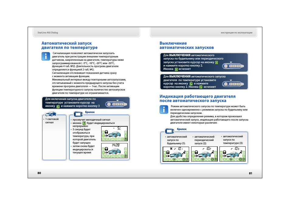 Автоматический запуск Старлайн А92 даёт возможность настроить пуск авто брелоком по: