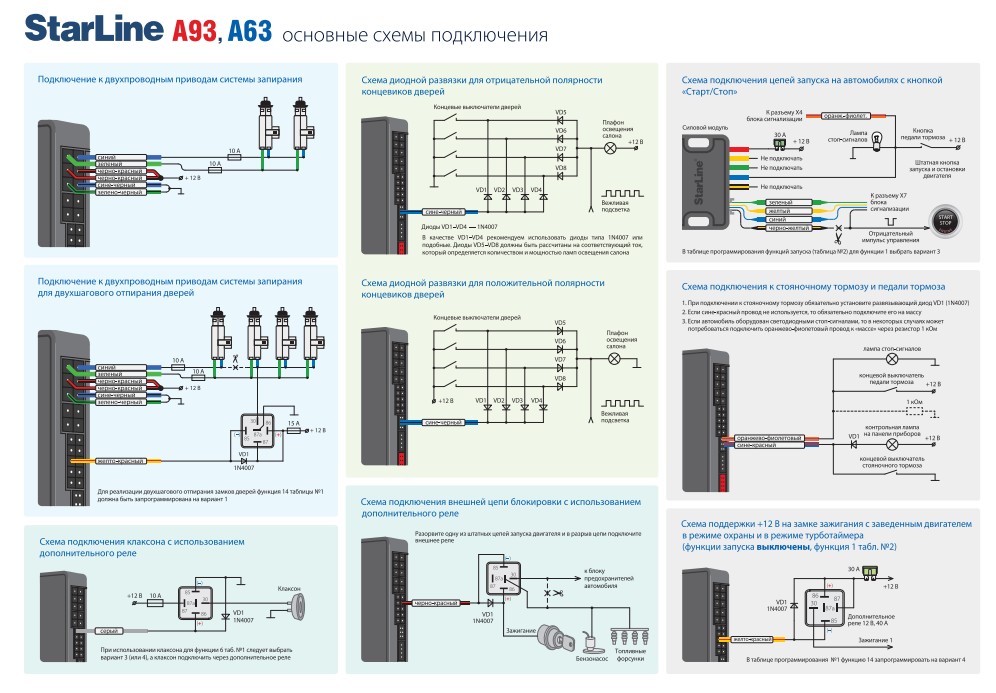 Общая схема сигнализации Starline A93, Starline A93 ECO, Starline A63 изображена на рис.