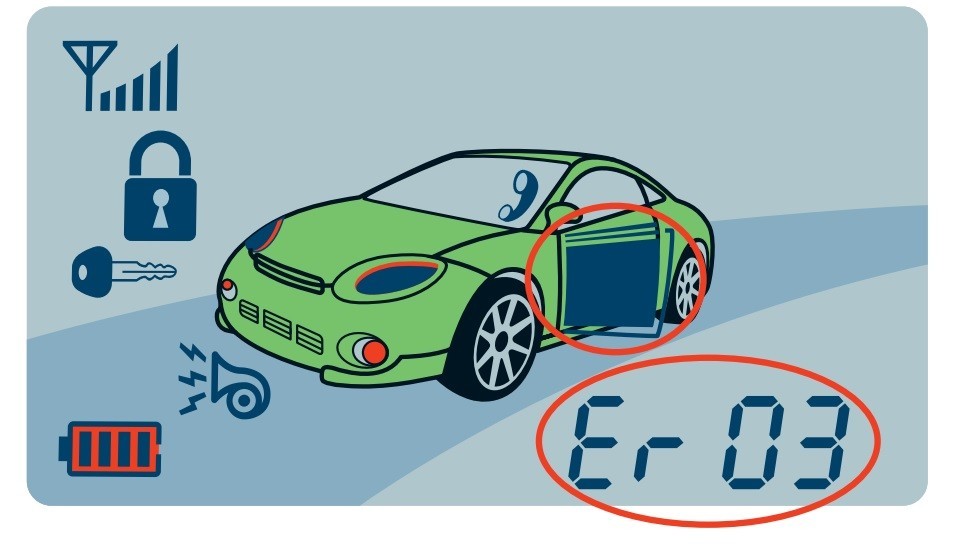 Например, если машина не ставится на автозапуск из-за открытой двери, на дисплее будет отображаться Er 03.