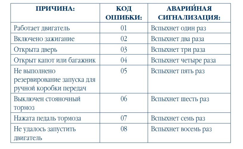 Если не работает автозапуск, то на дисплей выведется ошибка, которую можно расшифровать благодаря таблице ниже.