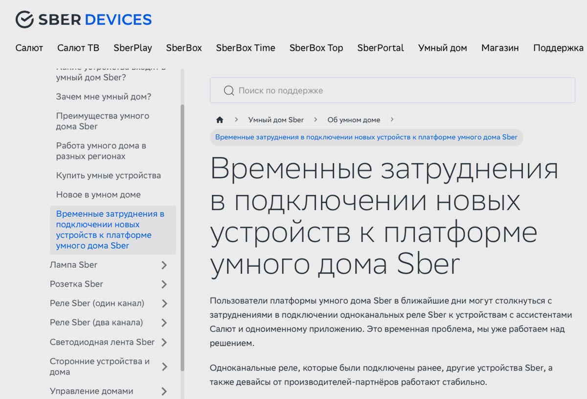 Следить за актуальной информацией по восстановлению работоспособности умных устройств Сбер можно на этой странице.