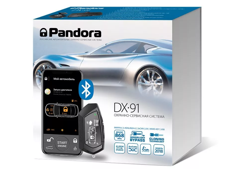 Если вы желаете обеспечить транспортному средству максимальную защиту, то лучше купить двухстороннюю сигнализацию Pandora DX-91. Она позволяет контролировать до 16 зон, включая оповещения о краже колёс. Приятно, что в девайсе имеется Bluetooth, а это обеспечивает возможность управления через мобильные устройства на базе Android или iOS. Пандора DX-91 комплектуется брелоком с качественным OLED-дисплеем. К слову, сам брелок достаточно компактный. Это касается и базы, внутри которой работает процессор Cortex-M4, позволяющий обрабатывать современные алгоритмы шифрования, а также обеспечивающий низкое энергопотребление.