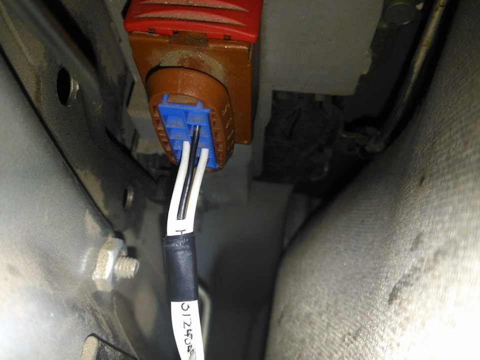 7. Чтобы наши провода не елозили в колодке, изолентой приматываем их к коричневому и черному проводам. Аккуратно устанавливаем колодку обратно в разъем замка: