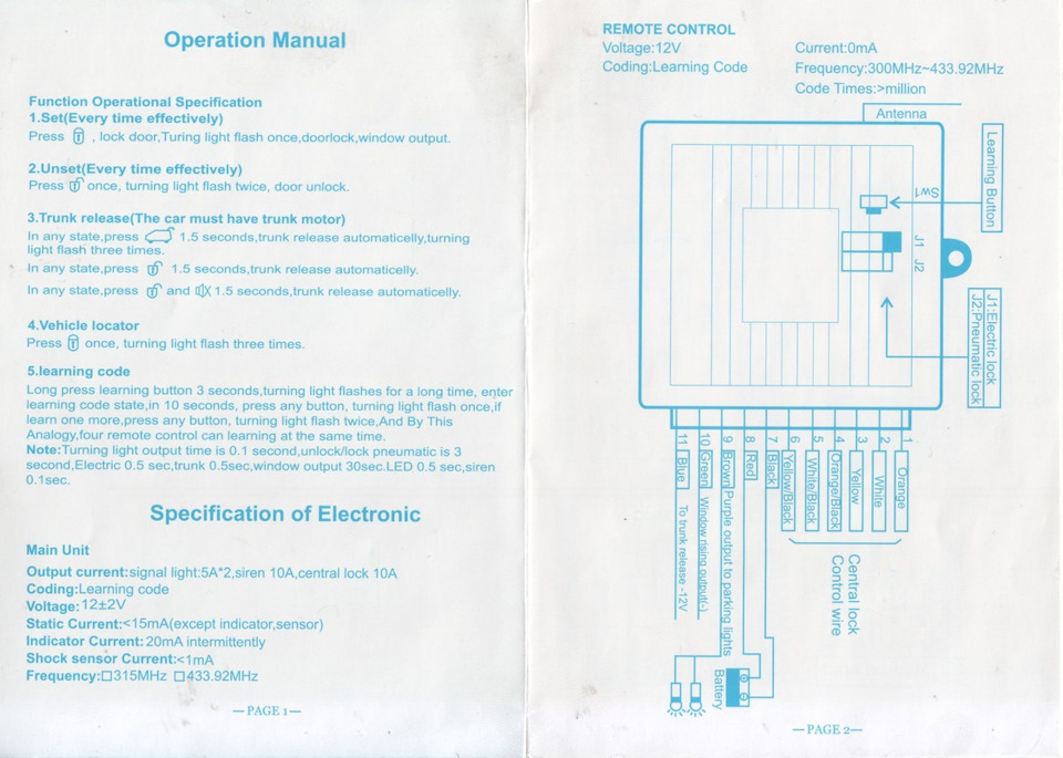 Покупался пульт ДУ на Aliexpress. На момент покупки стоил 580 рублей. Можно найти и дешевле.В комплекте: два брелока, блок ДУ, комплект проводов с колодкой и мануал на английском языке: