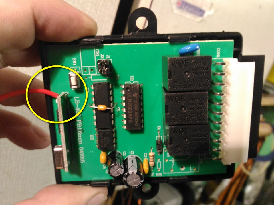 2. Провод антенны (красный) внутри блока ДУ никак не закреплен, только припаян. Желательно подвязать его к блоку управления чтобы не болтался. Из-за частого перегиба провод ломается в месте пайки на плате.