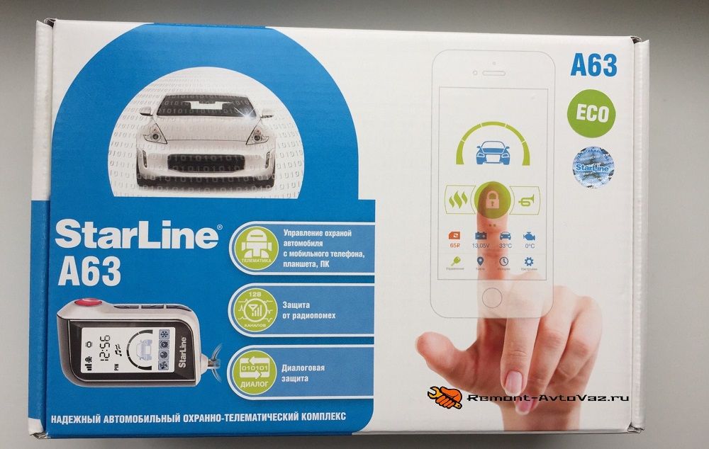63 модель считается упрощённой версией Starline A93, отличаясь от неё отсутствием сирены и силового реле, посредством которого реализуется функция автозапуска. Несмотря на его отсутствие в комплекте поставки, этот блок можно приобрести отдельно. Стоимость базового набора – 6700 рублей. Во всём остальном функционал сигнализаций идентичен. Присутствуют датчики чувствительности и удара, позволяющие отслеживать любые попытки изменения пространственного положения автомобиля, сигнализируя об этом владельцу.