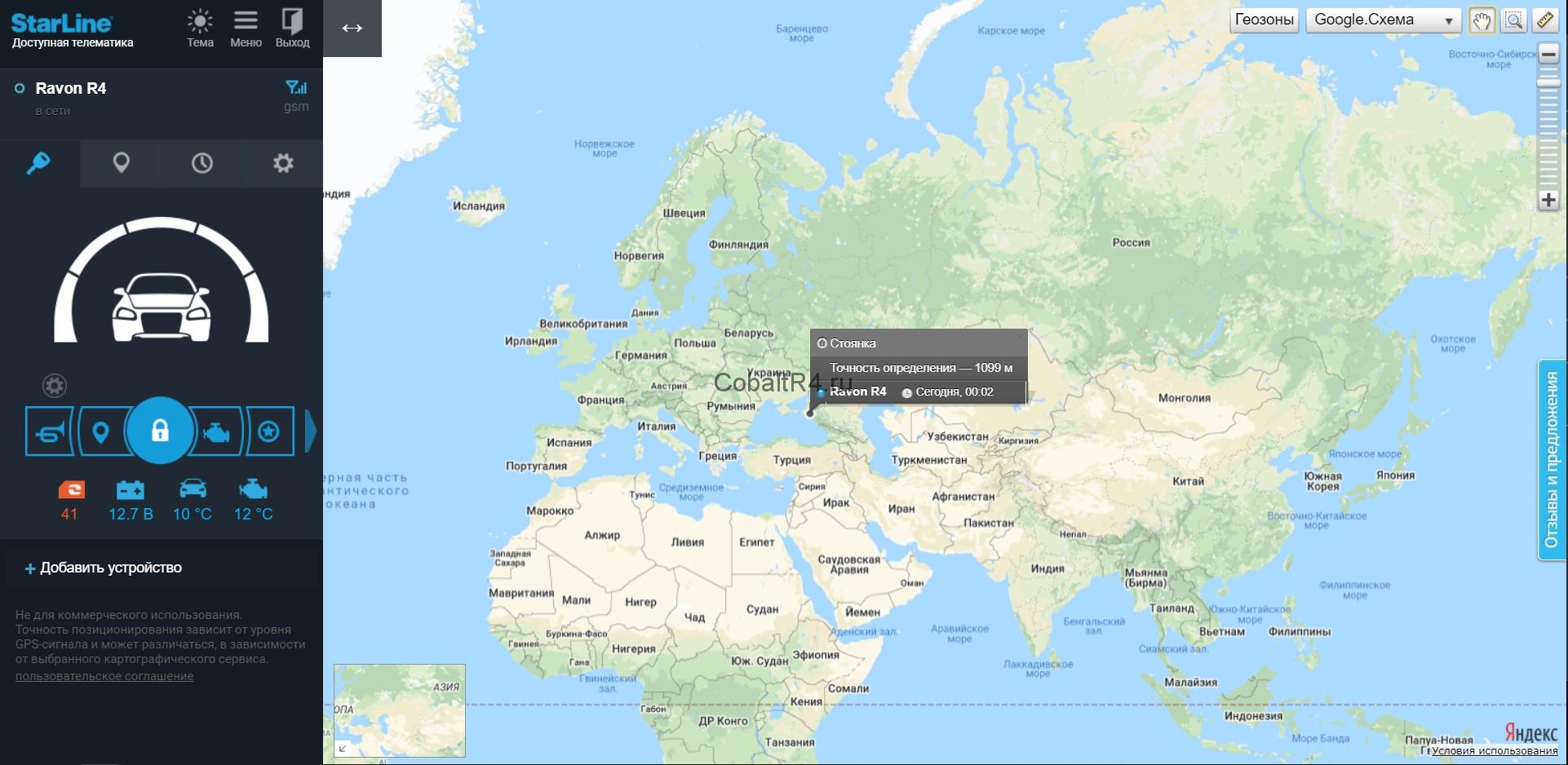 По сути сервис представляет из себя преимущественно карту со всё тем же местоположением автомобиля и треками поездок: