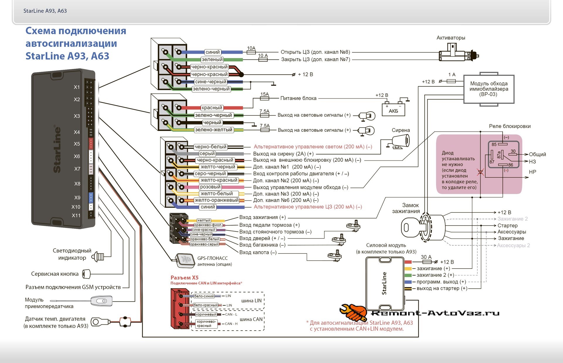Скачать StarLine A94, схема подключения.