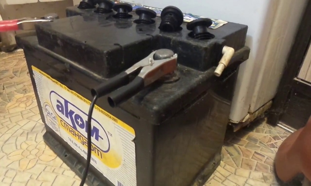 Если на аккумулятор в 60 Ампер/часов подать ток в 10 ампер, то электролит в банках практически сразу закипает, это нормально. Допускать этого не следует — могут осыпаться пластины.
