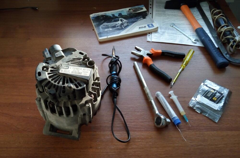Для восстановления генератора своими руками на автомобиле Peugeot 308 требуется сделать следующее: