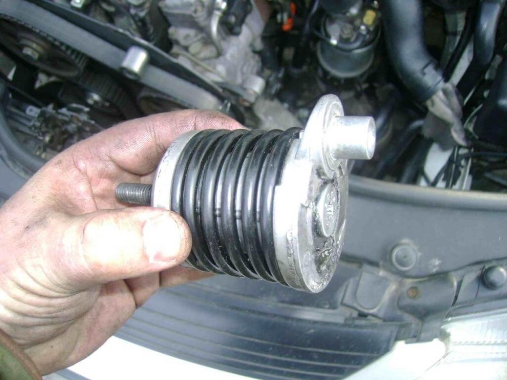 - открутите крепёжный болт и снимите сам ролик-натяжитель;