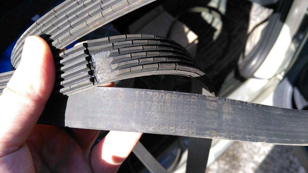 История эта давняя и началась она не вчера, но в совокупности я порвал уже не меньше 6 ремней и проблему не решил.Ремни рвутся по разному. Некоторые расслаиваются, некоторые плавятся и рвутся поперек без расслоения оставляя на шкивах куски плавленой резины. Ремни я использовал разные и оригинальные и неоригинальные и не увидел зависимости между производителем и способом разрушения ремня.Также у меня развалились (по отдельности): 1 обводной ролик; 1 ролик натяжителя; 1 натяжитель. Кроме того я заменил муфту генератора.