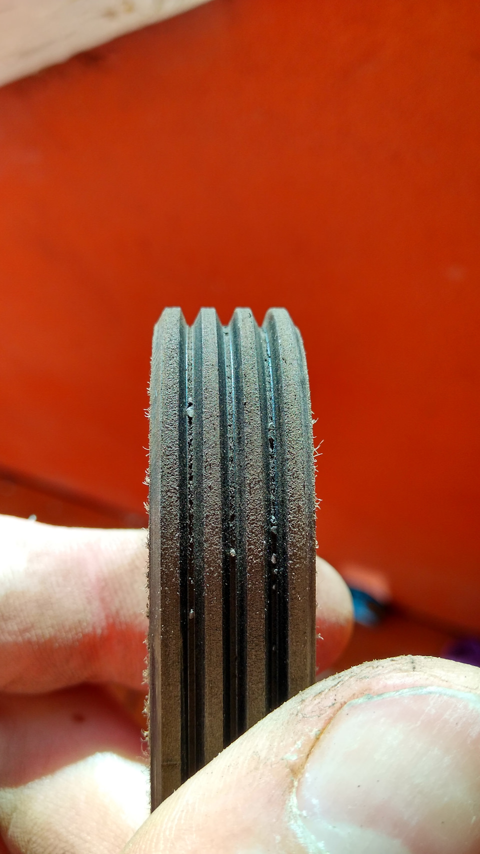 В принципе ремни еще бы ходили и ходили, лишь маааааленькие трещинки местами и камешки забиты, но по субъективным ощущениям еще бы прошли тысяч 30-40 прям смело и безопасно… Поменял их так как полез менять ролик, который верой и правдой отпахал 186 тысяч и лишь с десяток тысяч назад начал в сезон осень-весна посвистывать после пуска… При проверке подшипника (вращая ролик) чувствовалось что он подустал)))