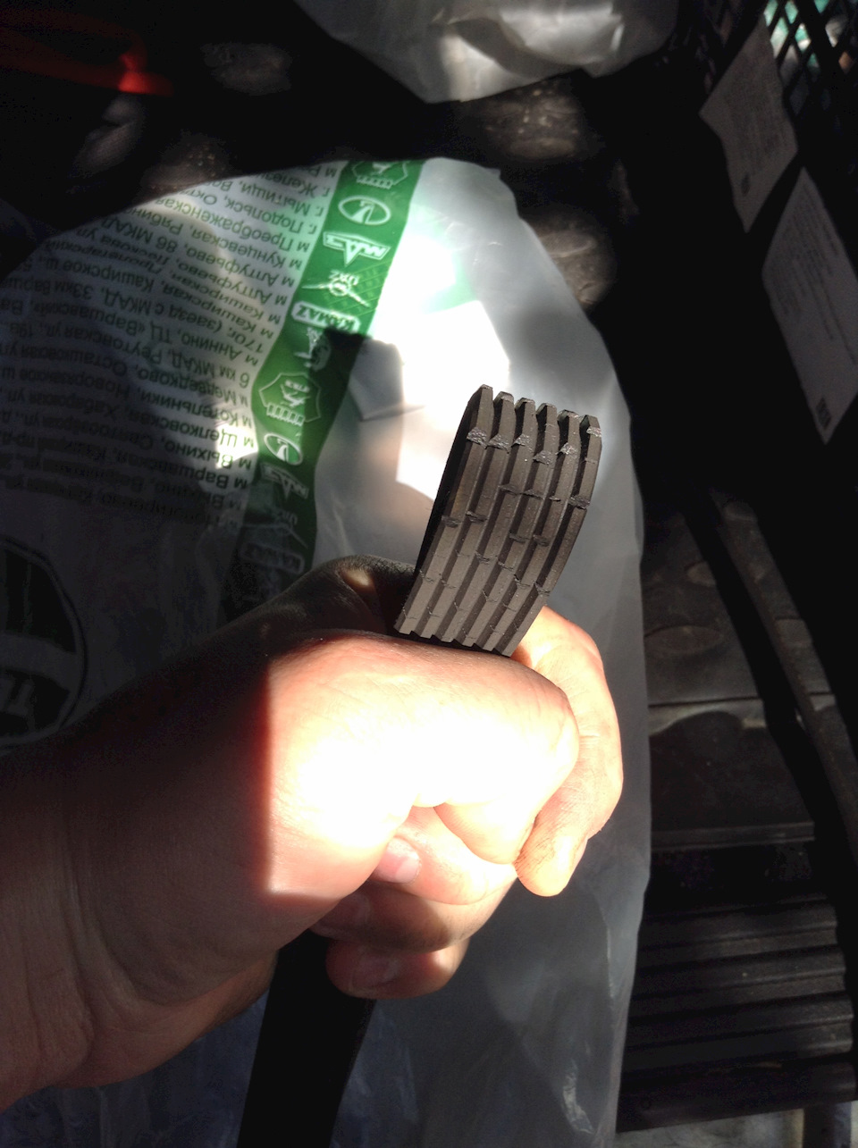 Один из ключевых моментов — материал, из которого изготовлен ремень. Если производитель использовал дешевые отходы производства резинотехнических изделий, то его продукция не прослужит долго. Такой материал застывает на морозе, становится “дубовым”. Это приводит к тому, что на поверхности появляются трещины.