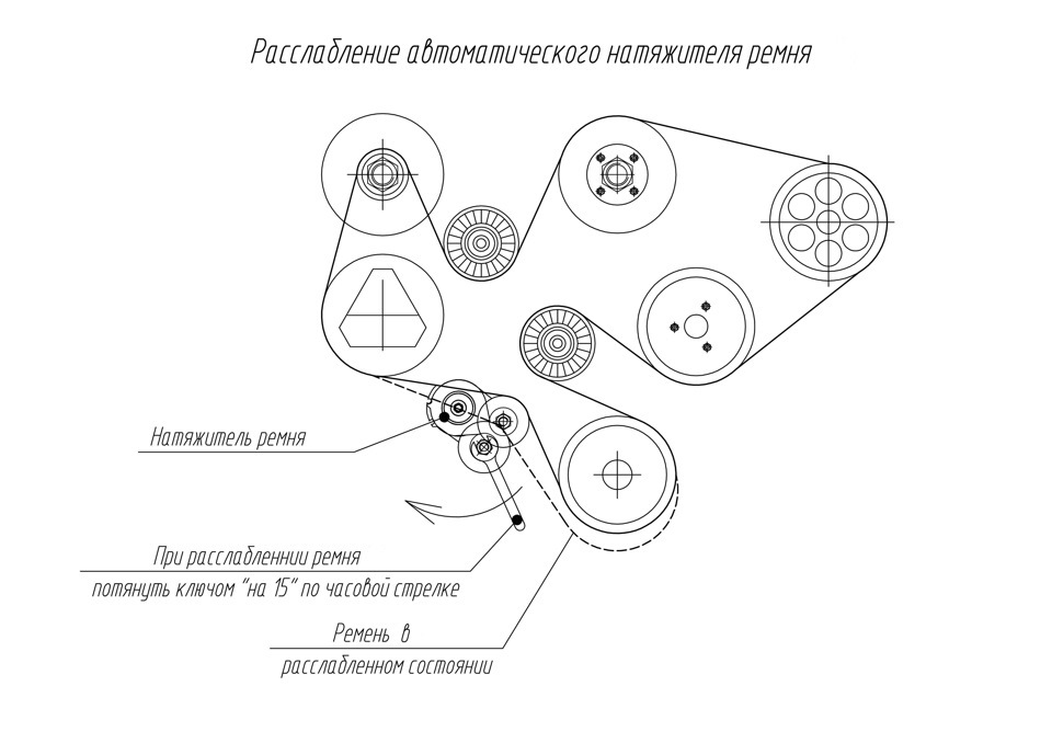 После замены обязательно потребуется натяжка ремня привода навесных агрегатов, так как без этого двигатель нормально работать не будет. Имеется два способа натяжки: