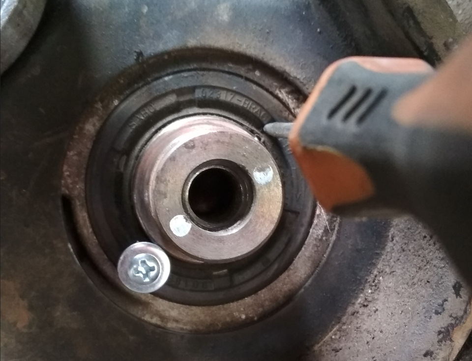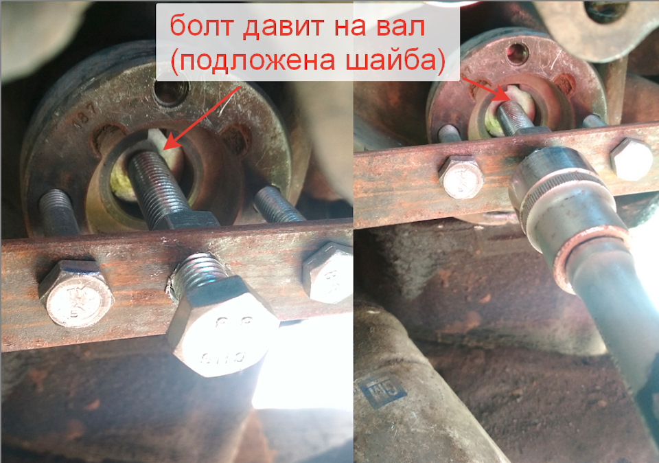 - Снять левое колесо, и при помощи воротка с удлинителем выкрутить крепежный болт шкива коленвала. Для этого включается пятая передача, выжимается педаль тормоза, и срывается болт.