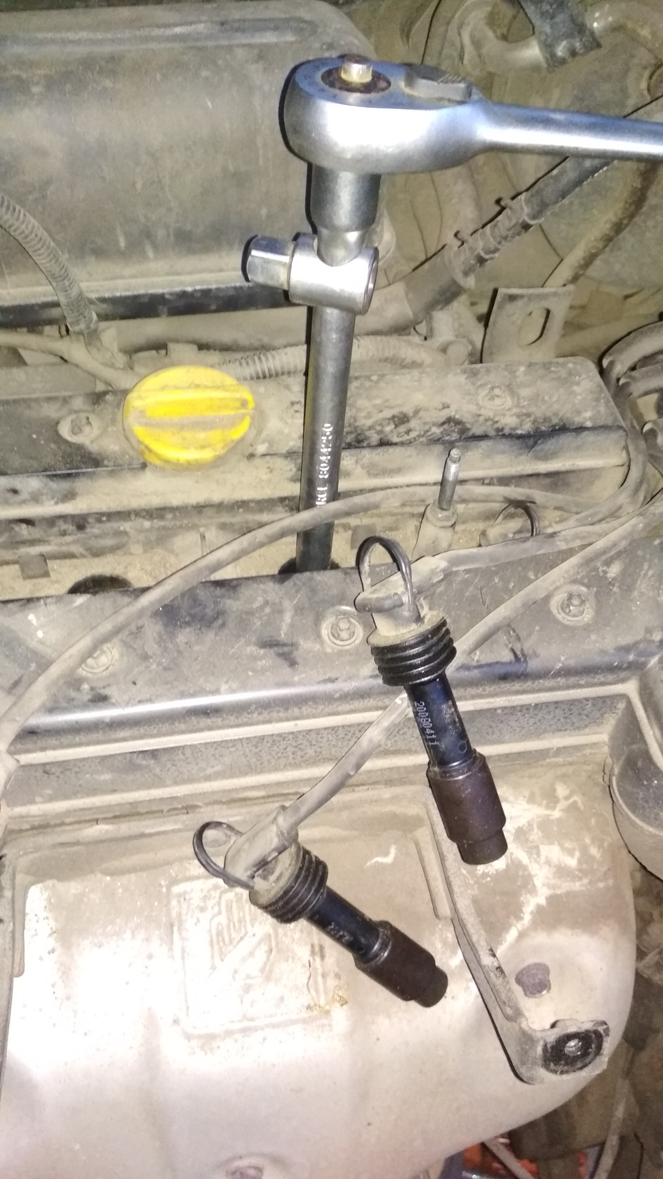- После установки меток на шестерне распредвала, переходим к коленчатому валу. Для этого необходимо выкрутить свечи зажигания (все выкручивать не обязательно, а только ту, которая находится в колодце первого цилиндра).