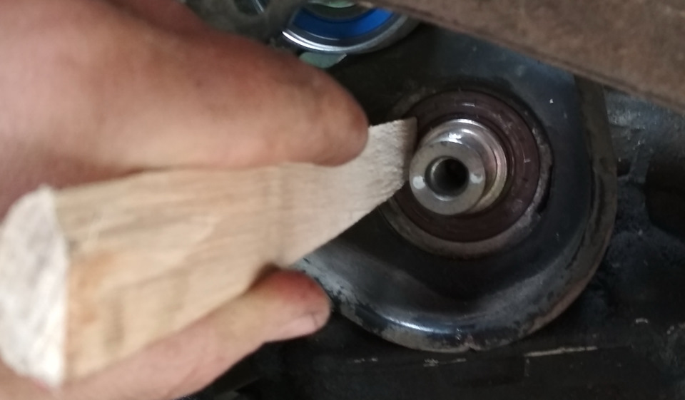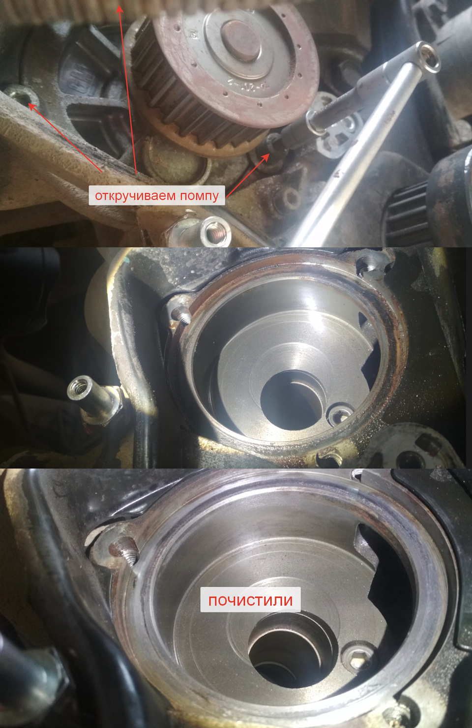 1)Открутить 3 болтика шкива помпы накидным ключом на 8, трещотка с головкой между шкивом и лонжероном не пролезет, если проворачивается то нажать на ремень.