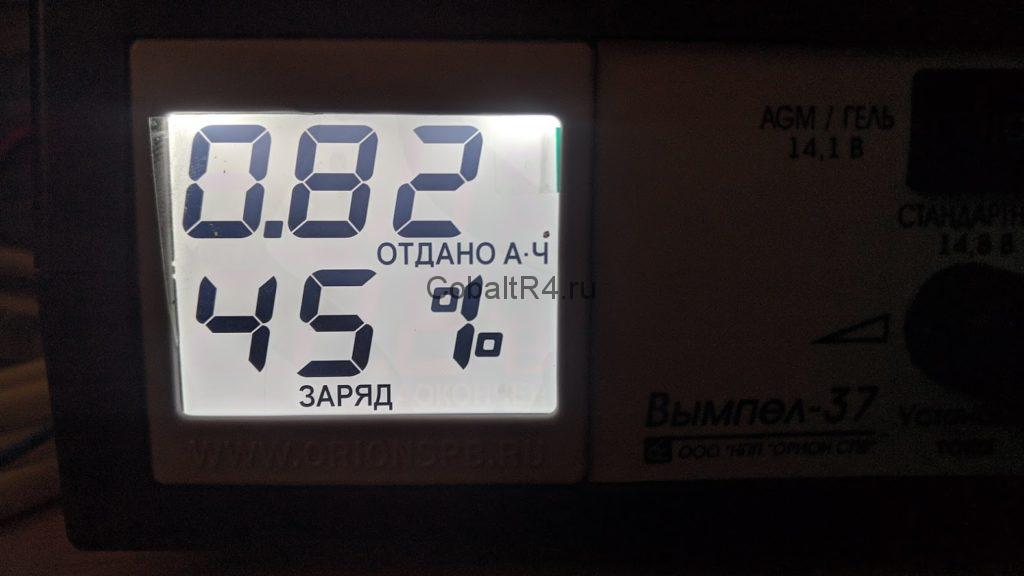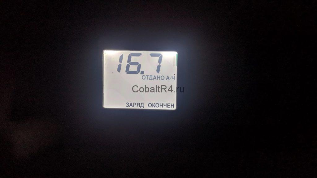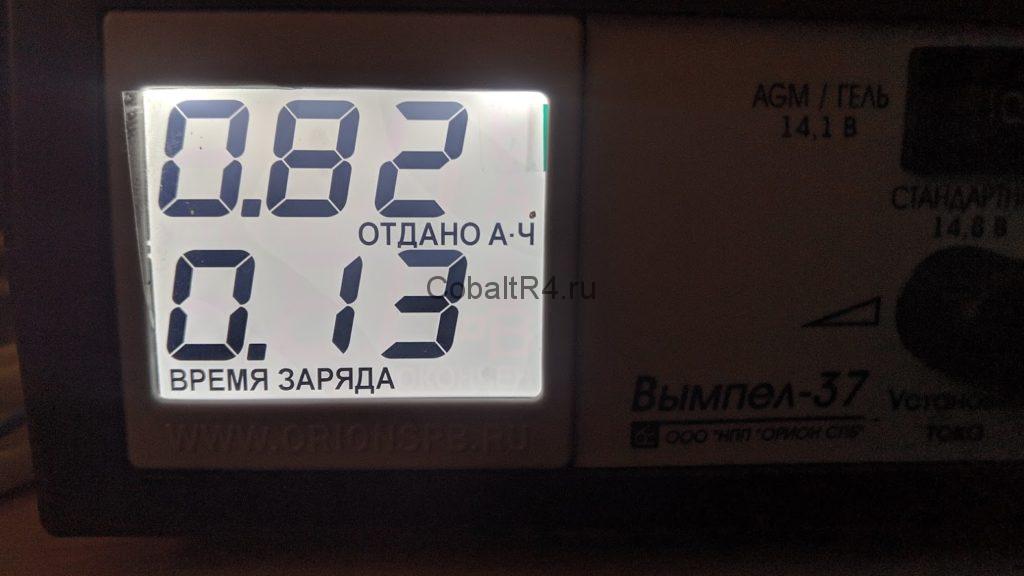 На нём отображается залитый (отданный в АКБ) объем в ампер/часах и время зарядки (0 часов 13 минут на фотографии).