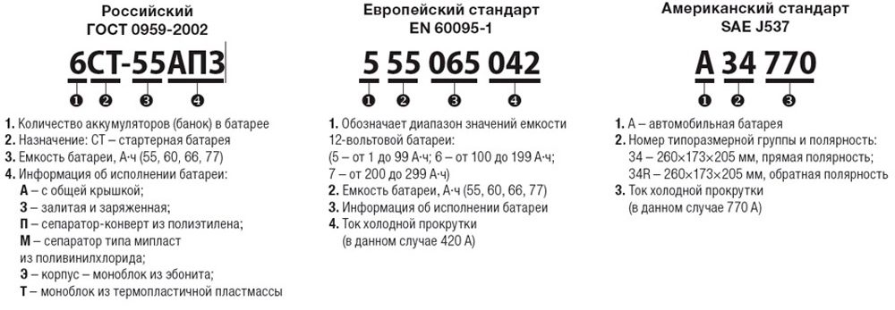 Емкость легкового автомобиля от 55-75 А*ч, у грузового она выше. Знак на этикетке +25°C. По этому числу можно определить ток, при котором батарея полностью разрядится в течение 20 часов.