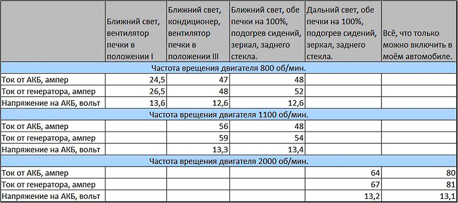 В сумме, потребление електроэнергии системами автомобиля при езде, считается равным 25 амперам, но эту цифру можно считать минимальной и даже заниженной. Так как при реальных условиях в пути потребление будет на 30% а то и на 100% больше.
