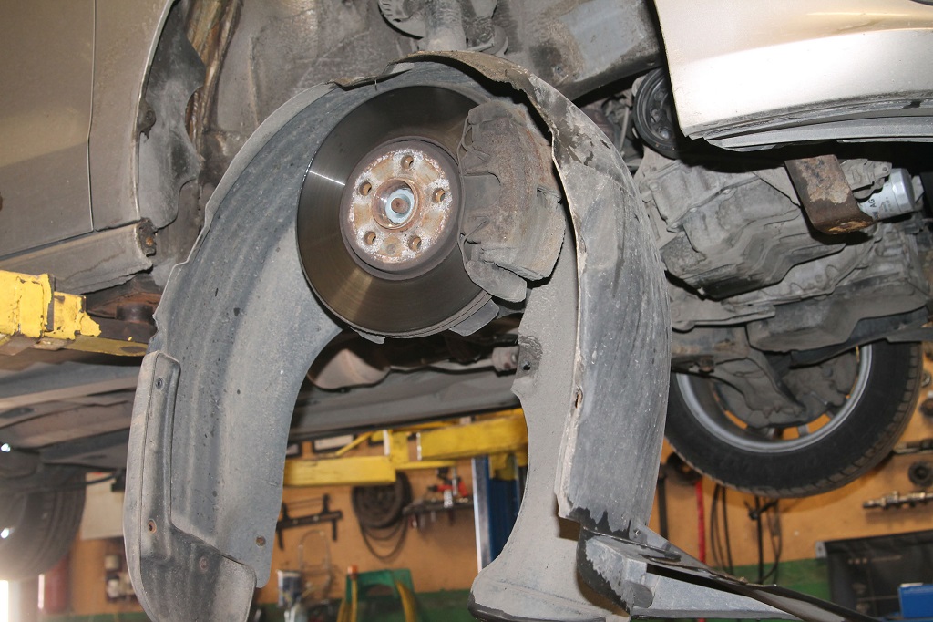 поддомкратить и открутить правое колесо, а потом и защиту колесной арки, которую автомеханики называют локером;
