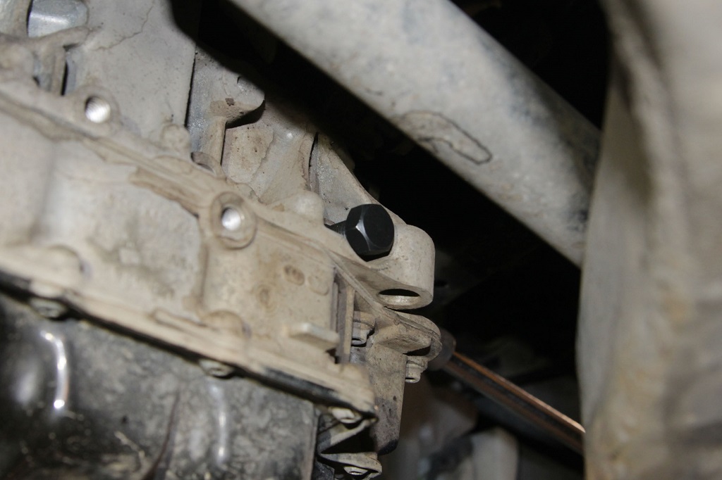 2. Поднять двигатель домкратом и открутить его правую подушку.