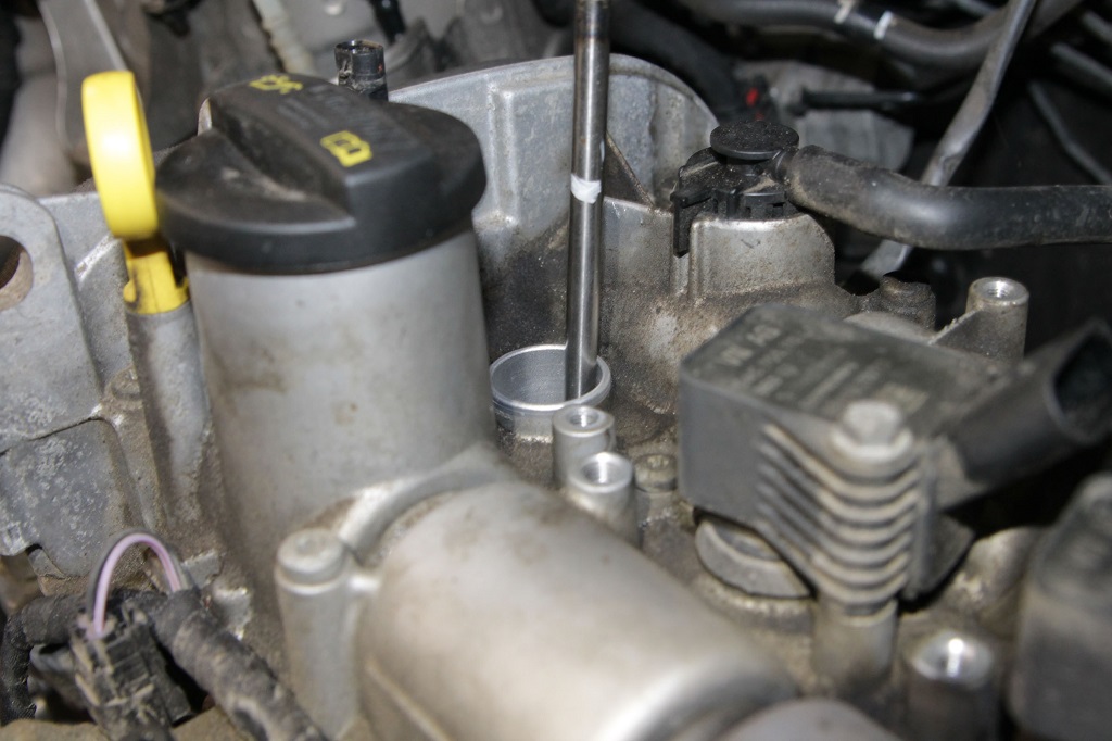 сначала выставить с помощью длинного прутка нижнее положение поршня;