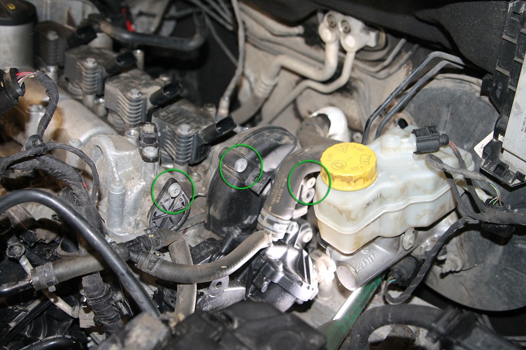 У двигателей с наддувом снимите хомуты 4 и верхний воздуховод 6 со шлангом 8 из моторного отсека