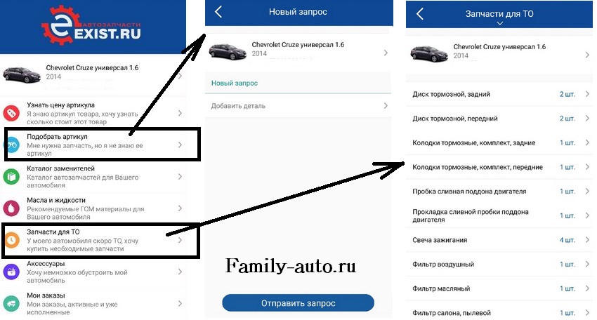 - У нас есть поломанный автомобиль, мы знаем что в нем сломалось. Идем в интернет магазин Еxist.ru, он хорошо известен в кругах автомобилистов. Регистрируем там свой авто, забиваем Вин код. Для удобства я скачал себе приложение на телефон, так получается быстрее работать.
