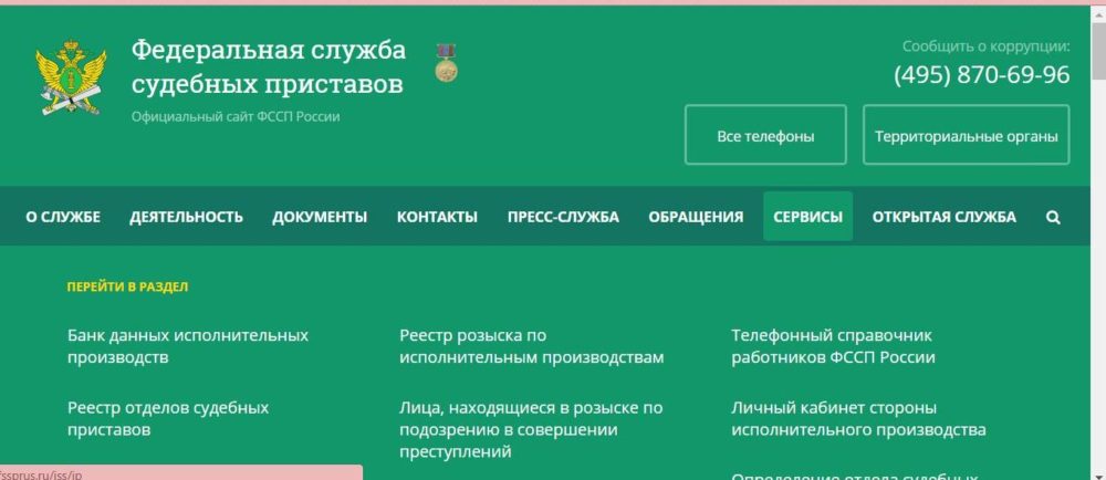 Fssprus.ru это сервис Федеральной Службы Судебных приставов. Алгоритм: заходим на сайт, «Узнай о долгах