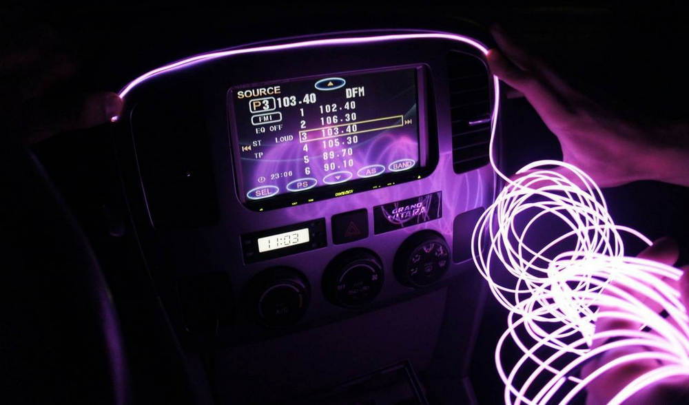 Неоновая подсветка салона автомобиля при помощи гибкого шнура