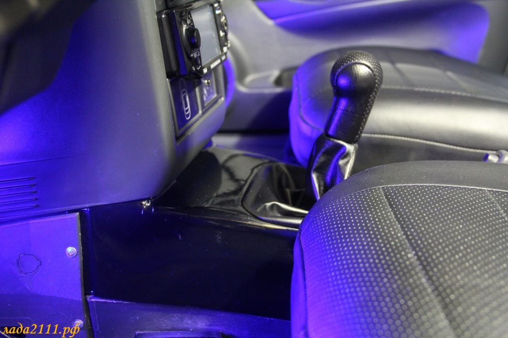 Способ украсить салон — сделать подсветку на рычаге переключения скоростей.