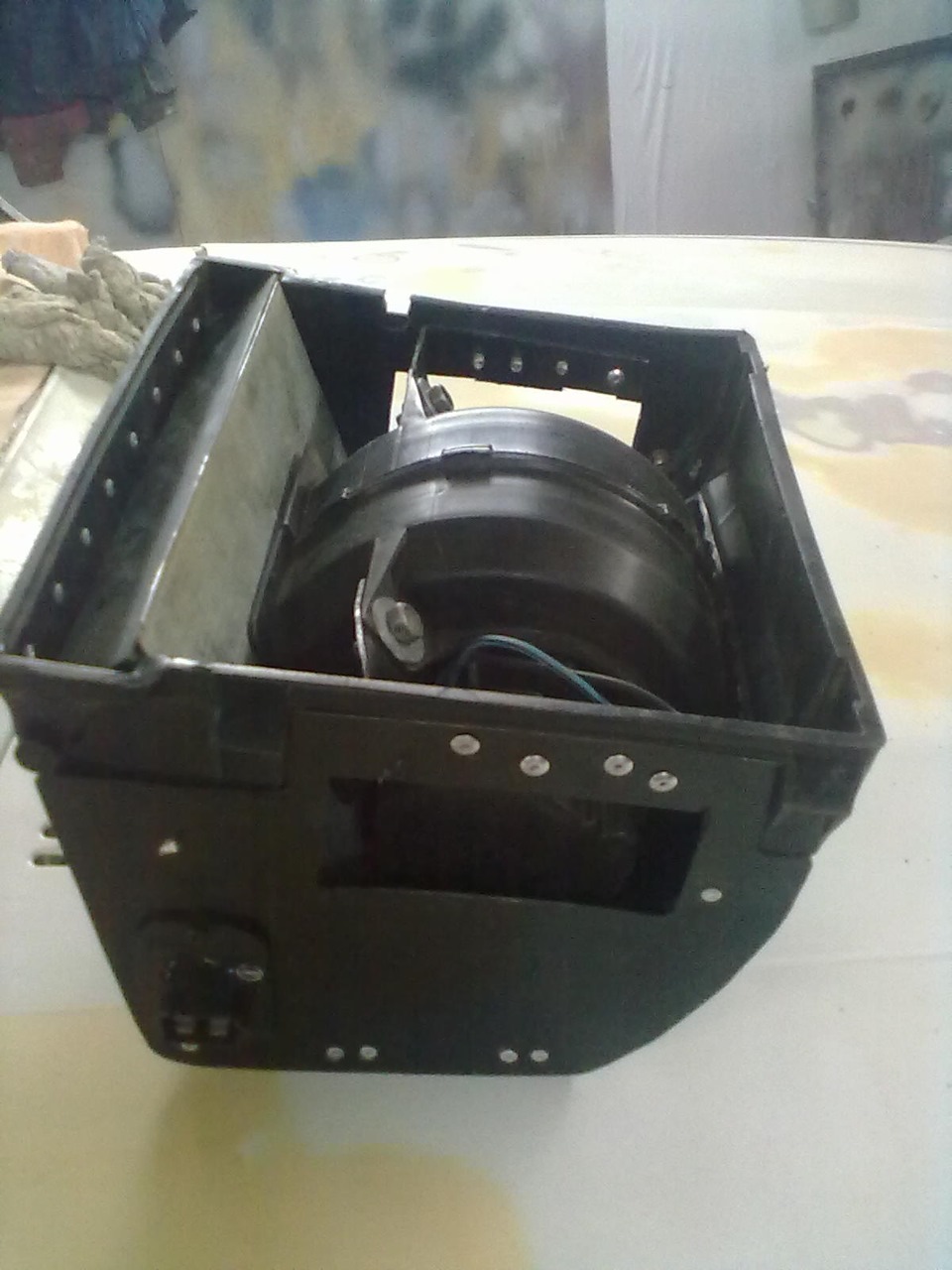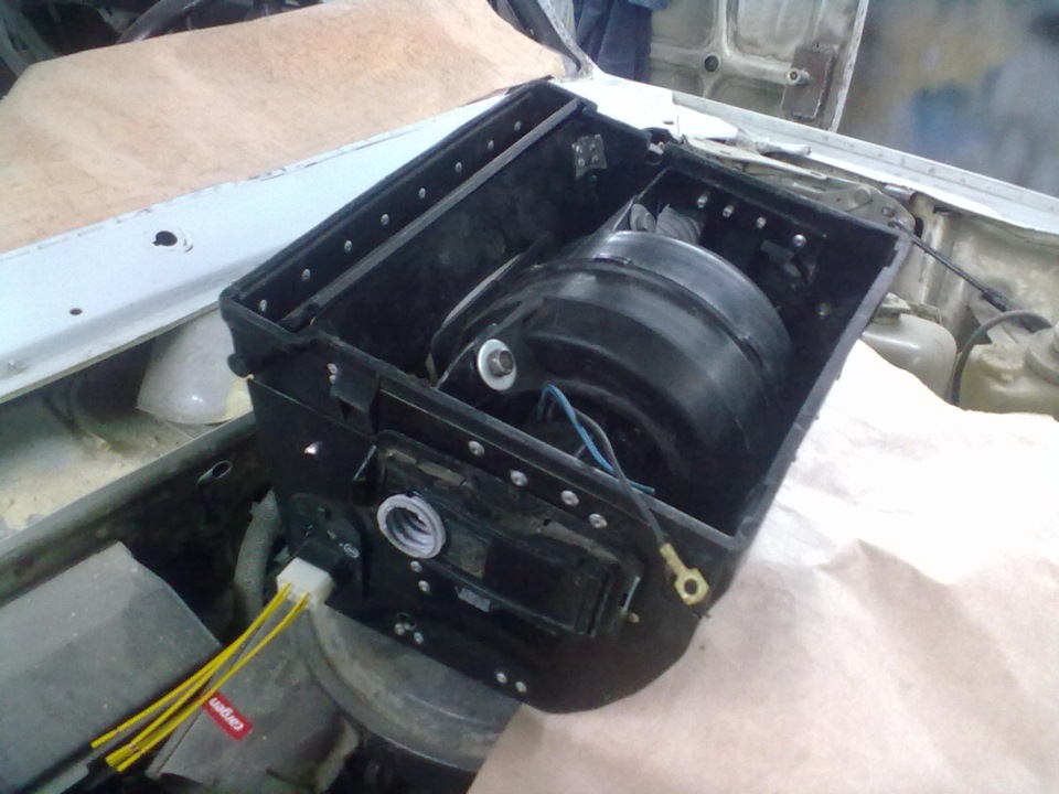 Давненько тут не был. Вобщем решил модернизировать отопитель. Разобрал печку и вырезал крепление вентилятора. Вот так.