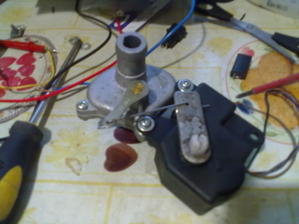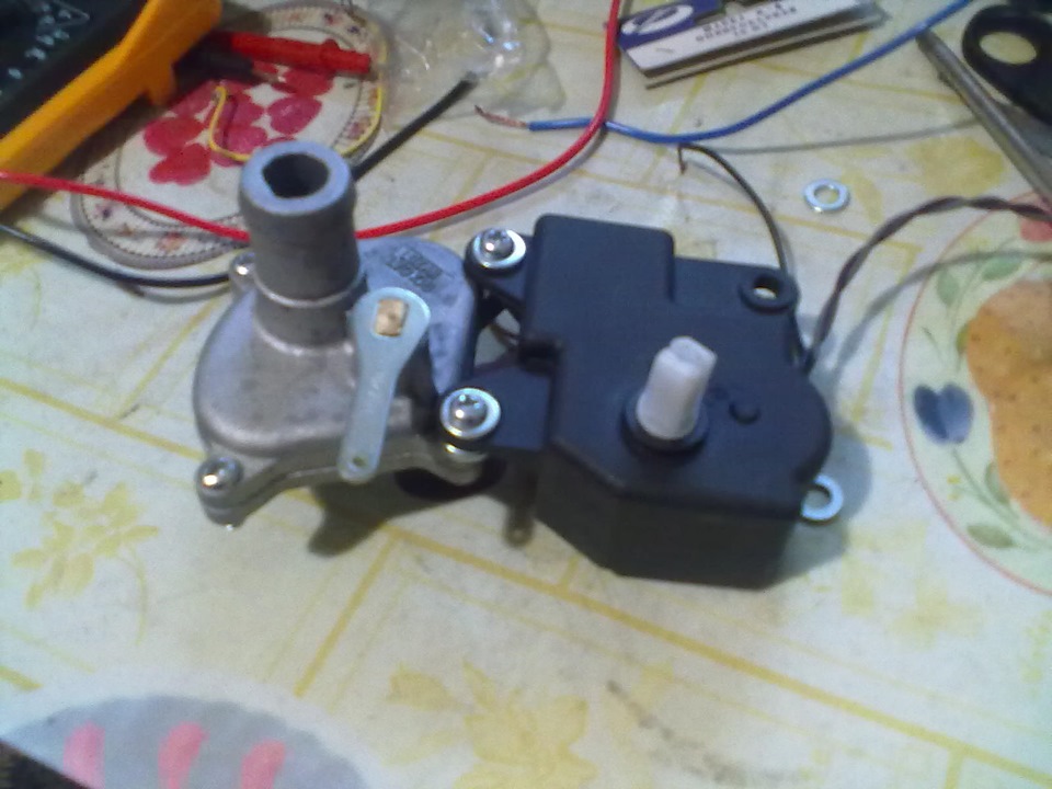 Резистор для двигателя отопителя использовал от Приоры. На 4 скорости.Далее решил сделать своего рода климат-контроль как на 10ых семействах. Взял керамических краник от ВАЗ 2108 и моторедуктор заслонки отопителя от ВАЗ 2110 нового образца, соединил их таким образом.