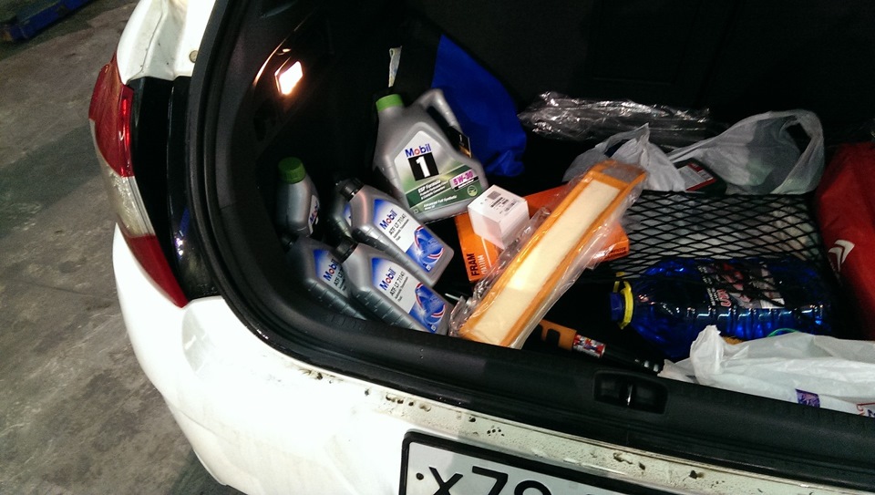 Фильтр масляный двигателя+прокладка пробки 260р. (оригинал)Фильтр воздушный двигателя 360р. (оригинал)Фильтр салона, угольный 480р. (Fram)Масло ДВС Mobil-1 ESP Formula 5w30 (4л.) 1620р.Масло АКПП Mobil ATF LT 71141 (4л.) 1400р.