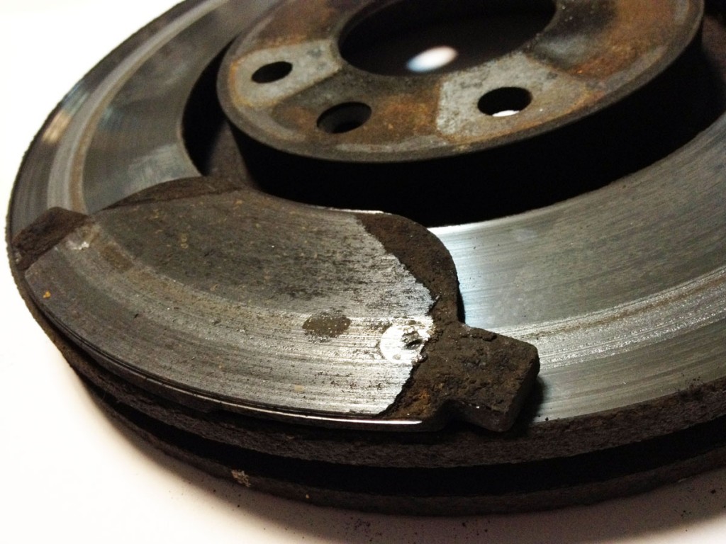 Тормозной диск Пежо 308 с остатками тормозной колодки