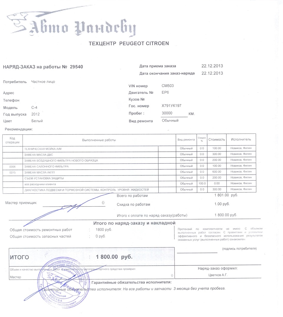 Citroen C4 Monblanc › Бортжурнал › ТО (30,000 км.). Обслуживаем по правильному регламенту