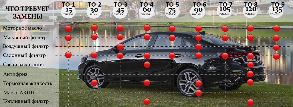 Регламентные работы по заводскому мануалу ТО Киа Церато 4