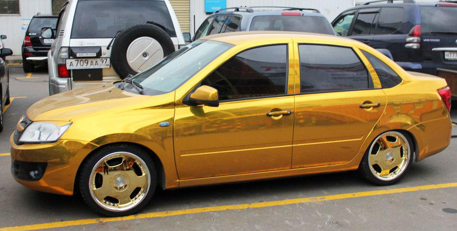 Первая деталь автомобиля, которой касаются руки народных умельцев – кузов. На улицах города уже можно увидеть машины, перекрашенные в самые неожиданные цвета – от матового черного до ярко розового. Но «венцом» всех творений пока считается Гранта, оклеенная золотой пленкой. Машина «а ля золотой слиток» — своеобразная попытка показать свою респектабельность и презентабельность