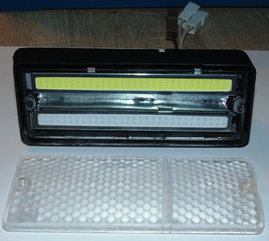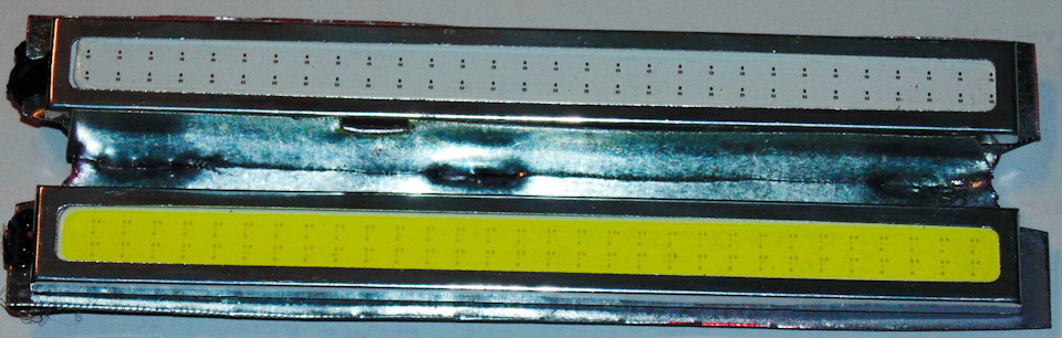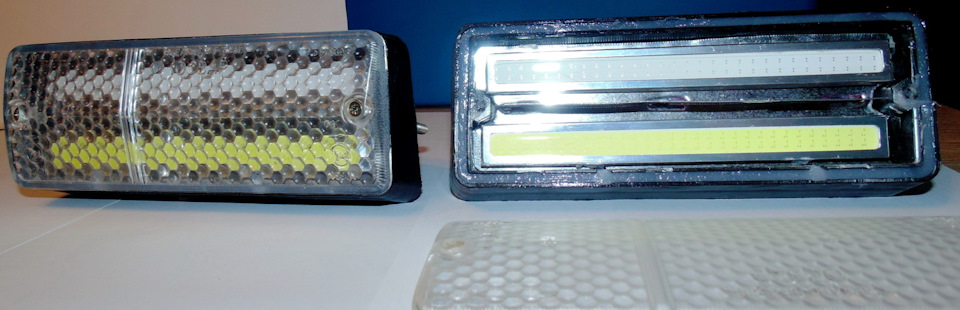 ИнтроРешил осовременить передний блок габаритов с поворотниками.Заказал на али 4е пластинки LED COB чипов. 2е — белые, 2е — желтые. Длина пластинок 14 см. Первый раз имел с ними дело, поэтому все характеристики не знал. На сайте было заявлено, что каждая по 20Вт. (но это явно не так)И вот… Зима, вечер, за окном умеренный снегопад, по телеку «Время покажет»… Скука. Но все меняется, когда приходят они… — смски с почты, сообщающие о том, что там нас ждут «ништячечки — ништяки» из поднебесной.Спустя 15 минут челночного забега, с языком через плечо, до отделения почты и обратно я стоял в коридоре своего дома и, по варварски, трепал желтенькие пакеты с иероглифами)). Внутри были белые (100р. за пару) и желтые (120р. за пару) Водонепроницаемые LED COB чипы длинной 14 см. Первым делом я пошел замерять их мощность на мультиметре, дабы узнать их подлинные характеристики (я пишу в личном блоге статью-каталог с описанием всех, попавших ко мне в руки, светодиодов… от индикаторов, до мощных матриц). И так, замеры тока при напряжении 12 Вольт, показали: желтые — 50mA, белые 75mA (0.6 и 0.9Вт соответственно). Светят ярко, потребляют мало (мягко говоря).В магазине автозапчастей были куплены прозрачные стекла на блок габаритов по 25р. за штуку (обожаю совковские тачки за, по истине, народные цены запчастей).