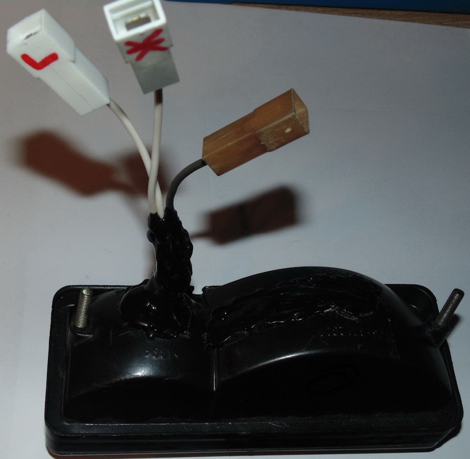 7. После вывода проводов через проделанные дырки, заливаем всё термоклеем черного цвета