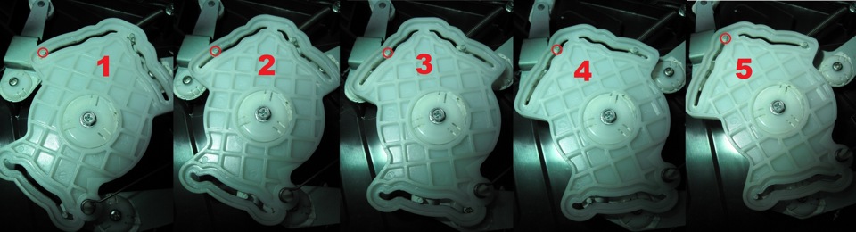 Сравнение ПУ отопителя Матиз и Патриот И я полез под приборку Матвея, выяснять, что там и как двигается? На фото представлены 5 положений «карты», соответствующих положениям средней ручки ПУ отопителя (по часовой).
